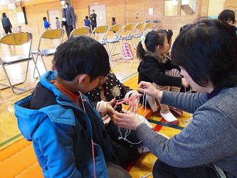 今日は、ほっとホーム津田の方々をお招きして、1年生の生活科「昔のおもちゃで遊ぶ会」が行われました。体育館を会場にして、竹とんぼ・メンコ・お手玉・あやとり・おはじき・だるま落とし・羽子板が準備され、ほっとホーム津田の皆様に教えて頂きました。子どもたちは初めて見るおもちゃに目を輝かせ、楽しそうに遊んでいました。ほっとホーム津田のみなさんも子どもたちと楽しそうに交流してくださいました。見ていた私たちも童心に返り一緒に楽しませて頂きました。ありがとうございました。