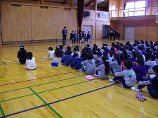 スポーツ少年団入団式が行われました。津田スポーツ少年団には8つの部があります。剣道部は素振りを行ったり、ミニバスケット部はシュートをしたりと、活動の様子を披露しながらの紹介でした。ルールを守ることや挨拶、礼儀、感謝の気持ちなど、いろいろなことを学びながら、勝利を目指して頑張ってほしいと思います。