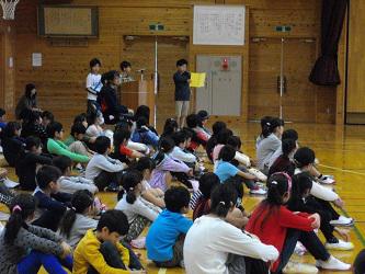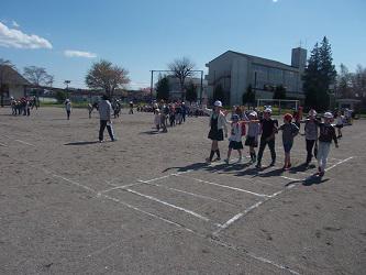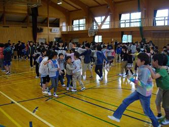 最後は、全員でじゃんけん列車です。全校児童222名の頂点に立ったのは・・・、4年生でした! 上級生と楽しいひとときを過ごし、1年生もさらに学校生活に慣れることができたようです。休み時間には、上級生と遊ぶ1年生の姿がたくさん見られました。