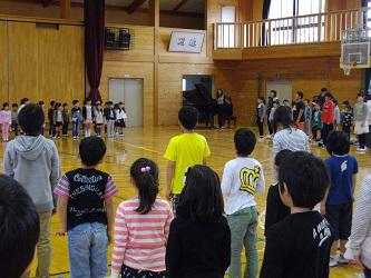最後に、在校生から校歌のプレゼントがありました。聞いたことのない校歌に目を白黒させる1年生もいましたが、覚えるのが早いのも毎年の1年生の姿。全校集会の時には、元気に歌ってくださいね。