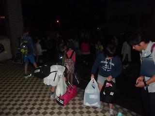 暗くて分かりにくいですが、下車中です 暗くて分かりにくいですが、児童代表のあいさつです