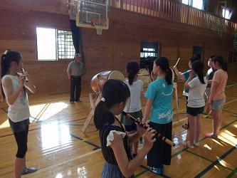 本校の特色ある教育活動の1つとして、地域に残る伝統芸能の伝承を取り入れています。今年も、会長の山崎長治様をはじめ、「平戸流上深津お囃子保存会」の皆様に御協力いただき、太鼓や笛の演奏に励んでいます。この保存会は、江戸時代後期に、江戸で平戸流の免許を受けた佐藤新弥に指導を受けて以来、地囃子と共に平戸流五段囃子を受け継いでいる団体です。練習の成果は、7月に行われる育成会主催の盆踊りと9月の運動会で披露されます。ぜひ、御覧いただきたいと思います。