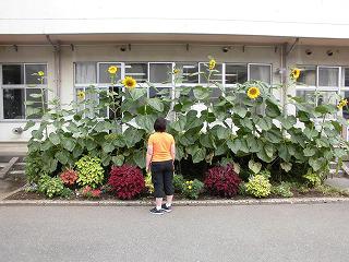 保健室前のひまわりです 職員室前のひまわりです