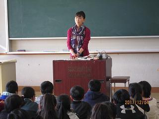 2年生と5年生の代表児童が、2学期を振り返った作文を朗読しました。2年生は、運動会や学習発表会の行事や好きな読書について、5年生は持久走記録会や臨海自然教室での自分の成長についての発表でした。他の子どもたちも、自分のことを振り返りながら真剣に聞いていました。校長先生からの大晦日の話の後、冬休みの過ごし方についてアンパンマンに出てくるキャラクターのセリフ「はひふ・・・」をもとに、児童指導主任の先生から楽しく教えていただきました。