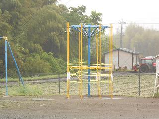5月2日(水)放課後の安全点検で、1本の棒が不安定であることが分かりました。応急処置をしましたが、よく確認をしてから使用再開にしたいと考えていますので、この連休中は使用禁止とします。テープを巻いて登れなくしてありますので、休み中に遊びに来た際にはご注意ください。