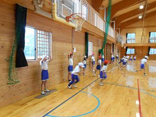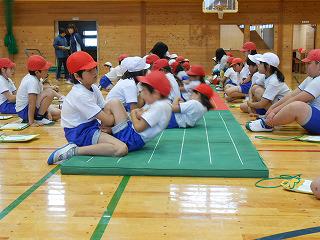 今日は、5・6年生の番です。ペアになって、反復横跳び、シャトルラン、上体起こしにチャレンジしました。シャトルランは、一定時間内に体育館の横を往復し、決められた時間に遅れなければ何回も走ることができる種目です。そのため、時間が少し延びてしまいました。しかし、見ている子どもたちからは自然と「がんばれー」の声援が飛び交い、温かな雰囲気の中での新体力テストになりました。
