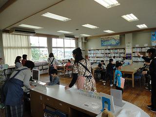 今日は1年生が初めて図書室を利用した記念の日です。KLVの方々に教わりながら、自分の力で本を選び、貸し出しの手続を済ませました。上手にできたご褒美に読み聞かせもしていただきました。「ワニぼうのこいのぼり」にみんな興味津々です。これから自分の選んだ本にチャレンジです。