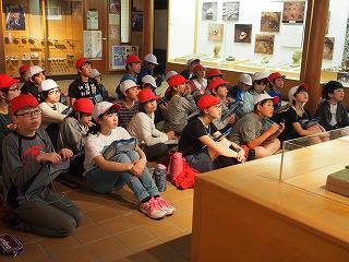 上州屋さんまでの道路は危険。一列で歩きます。 資料館で学芸員の方の説明を聞きます。