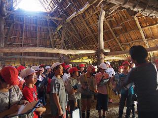 6年生が「うつのみや遺跡の広場」に出かけました。この施設は、宇都宮市上欠町の聖山公園造成にあたり、記録保存を目的として昭和57年から62年に発掘調査を実施したところ、昭和61年に予想もしなかった縄文前期の大集落跡が発見されたため、当初の墓園計画の一部を変更して、「根古谷台遺跡」と称して現状保存することにしたものです。