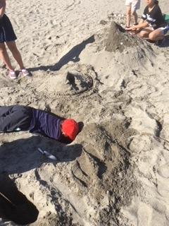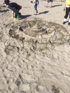 5/14(月)午後の活動は、海岸に出て砂の造形です。波の音を聞きながら、活動班ごとに思い思いの作品をつくりました。