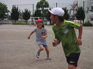 野外給食のあとは、仲よし班で遊びます。いつもより長い昼休み、汗びっしょりになりながら、1年生から6年生までみんなで走り回って楽しい時間を過ごしました。