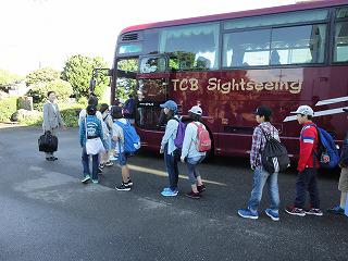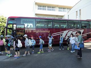 待ちに待った5年生の臨海自然教室です。朝のうちに雨もあがって、すがすがしい空気の中を全員元気に出発しました。