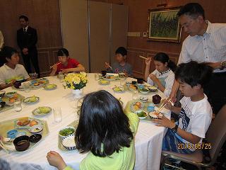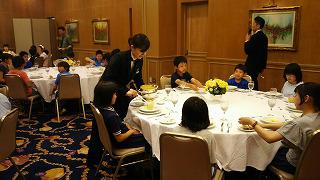 ホテルでの夕食は、テーブルマナーです。ナイフとフォークの持ち方やスープの飲み方等、同席者や給仕してくださる方への気遣いが大切であり、それがマナーの基本であるという説明に、子どもたちも頷きながらおいしい食事に満足そうでした。