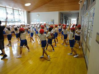 運動会の練習も日々順調に進んでいます。56年生が前で12年生にラジオ体操をしっかり教えています。34年生はオープンスペースで南中ソーランを熱心に踊っています。