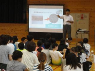 6年生の総合的な学習の時間「さつき荘訪問」の一環として、今年から「認知症サポータ養成講座」を組み込みました。講師は、毎年子どもたちが訪問して交流を図っている「さつき荘」のケアマネージャーさんたちです。高齢者と呼ばれる年代、認知症の症状、認知症の方への関わり方等について、クイズや演技を通して具体的な学習ができました。子どもたちも出されたクイズの答えに一喜一憂したり、迫真の演技に引き込まれたりして真剣に学習することができました。また、「さつき荘」で働く人々についても説明があり、キャリア教育の視点からも学習を進めることができました。10月にはこの学習を生かして、最後の訪問につなげていきたいと思います。