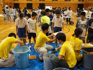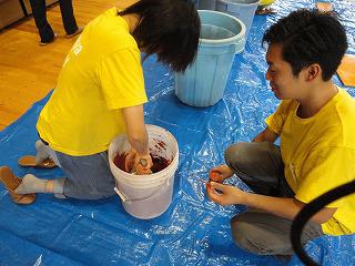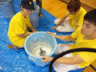 宇都宮大学の学生さんたちが熱心にコンクリートを練ってくれます。