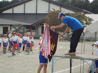 1日順延させていただきましたが、すばらしい運動会が開催でき本当に良かったです。子どもたちの熱心な取組や保護者の皆様のご協力により進行も実にスムーズでした。ありがとうございました。得点差がわずか3点でしたので互角の勝負でどの種目も見応えがありました。勝敗は必ずつくものですのでこれをこれからの生活において、「もう少し努力しよう」とか「ここまでやってみよう」など考えていけるといいと思いました。