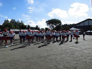 堂々とした入場行進です。運動会に向けた意気込みを全身で表しています。気温も落ち着いてきたため、最近は力強さや真剣さが伝わってきます。
