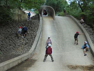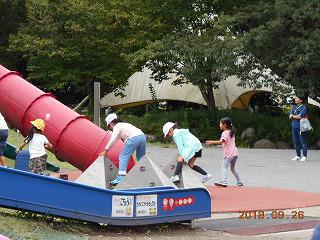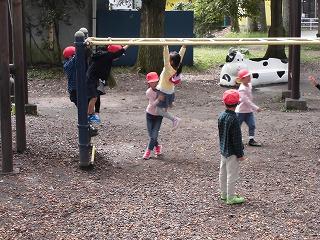 運動公園では協力しあって遊びます。実際に体験して譲り合ったり、助けてあげたりすることを学ぶのですね。
