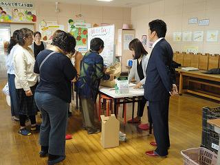 お米の重さ当てです。なかなか難しかったようです。 当選者に賞品のお米が配られます。