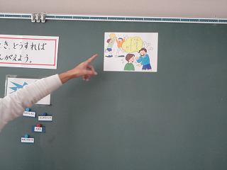 あおぞら学級の研究授業がありました。「こんなときどうするの」です ①コミュニケーションを図ること。②気持ちを安定させること③よりよい人間関係を形成すること を目標として自立活動の学習を行いました。