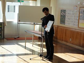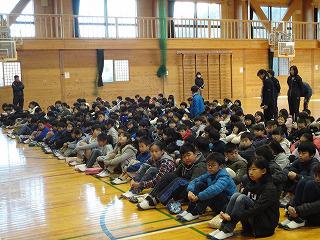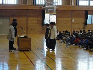 「友だちはいいもんだ」を全校生で歌いました。寒い体育館でしたが寒さを吹き飛ばす元気な歌声と友だちを思いやる歌詞の内容に心を打たれました。