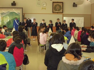 関口先生が「国歌」「市歌」を歌ってくれました。みんな感動して聞き入っていました。大きな拍手が起こりました。