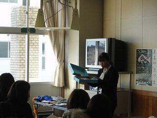 村上栄養教諭から給食について実物を用いての説明です。