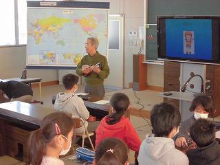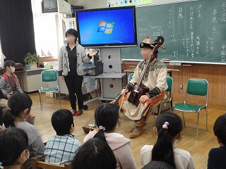 2年生の「スーホの白い馬」はモンゴルが舞台となる有名なお話です。1日の疲れを癒やす馬頭琴の音色に子どもたちは興奮気味でした。馬のいななきをそっくりの音で表現し見事な演奏を見せてくれました。