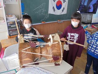 韓国出身の方から、韓国の風景、服装、生活の様子をうかがって、韓国の遊びに触れたり民族衣装を身にまとったりして、子どもたちも嬉しそうでした。