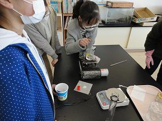5年生は理科で「ものによる溶け方のちがい」の実験中です。温度を上げるととてもよく溶けるもの、温度を上げても特に変化がないものなど様々です。この実験は根気強く観察することが必要になります。5年生いつものように協力して溶け方をしっかり調べています。
