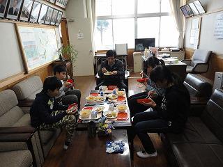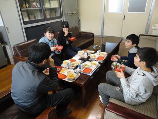 そんな中校長先生との和やかな会食が始まりました。なかなか校長室で食事をする機会もないものですから最初は緊張していましたが、時間が経つにつれ会話もどんどんはずみ、最後はみんな爆笑するほどでした。どんな話をしていたんでしょうか。後でぜひ聞いてみてください。