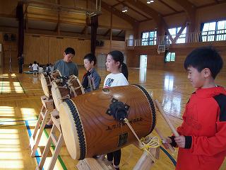 今日は初日。初めて参加する4年生はマットをバチでたたいて『中付け』の練習です。これが全ての基本だそうで、これをマスターしたら、5年生から『下付け』『大ど』『鐘』『笛』などのパートに移ることができます。育成会や運動会で発表しますので、仕上がりが楽しみです。