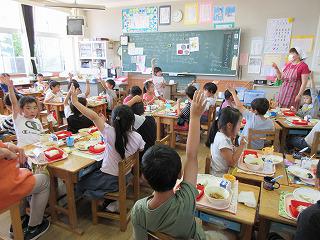 2年1組の教室でそのことを教えると、「エッ!?」とびっくりする子どももいましたが、印象と違って柔らかくておいしい食べ物であることが分かると、おいしそうにほおばっていました。