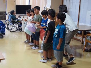 本校では、学区内にあるさつき荘に2・4・6年生で訪問し、利用者の方たちとの交流活動を行っています。2年生は入学してから初めての訪問です。事前学習として、班ごとに分かれて歌や折り紙のプレゼントの準備や進行の練習等をして、本番の今日を迎えました。