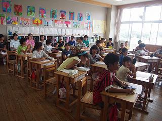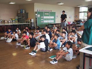 学校の北側に隣接する学童保育「わくわく」。夏休みになると、利用する子どもたちの人数も増え、今日は66人。そんなところで、エアコンが故障してしまったと午前中に学校に相談があり、急遽体育館のミーティングルームをお貸し、何とか急場をしのいでいただきました。