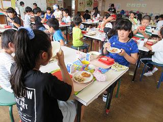 今夏になって2度目の全室エアコン運転日になりました。快適な中でのおいしい給食とは、しばらくの間お別れです。夏休み中、冷たい物や好きな物ばかり食べていると、熱中症や夏バテになりやすいので、注意してほしいですね。