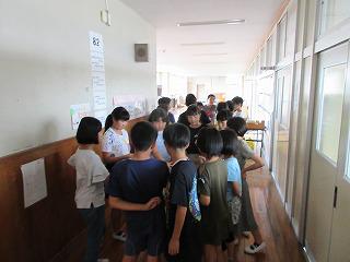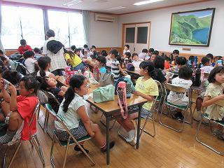学校の北側に隣接する学童保育「わくわく」。夏休みになると、利用する子どもたちの人数も増え、今日は66人。そんなところで、エアコンが故障してしまったと午前中に学校に相談があり、急遽体育館のミーティングルームをお貸し、何とか急場をしのいでいただきました。