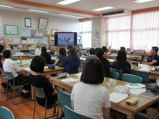 鹿沼警察署生活安全課の係長さんとスクールサポーターの方を講師にお招きし、「犯罪抑止の考え方」について学びました。内容は、DVD「学校を守れ!不審者の侵入を防ぐ」の視聴やさすまたを使っての実技、講話でした。1学期の避難訓練でも一部の職員は指導を受けましたが、全員で研修を受けるのは今年初めてでした。この研修で危機管理意識を磨き、2学期も子どもたちの安全安心を守り、充実した教育活動を進めていきたいと思います。