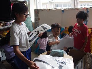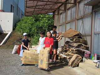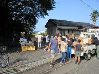 8月25日(日)朝8時から、上深津、中深津、下深津、丸笠、白桑田西・東、松原の各地区ごとに行われました。保護者の方たちだけでなく、夏休み中の子どもたちの参加も多数あり、元気な姿を見せてくれました。みなさん、夏の太陽を浴びてよい汗をかきながら、一生懸命重い荷物を運んでいました。
