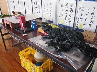鯉にえさをやっていた6年生に、「この花の根っこはある野菜です。何でしょう?」とクイズを出しました。「ごぼう?」ちがいます。