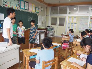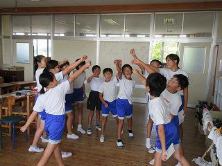 運動会前日まで業間の時間が長くなる特別日課なので、早速各係ごとに練習が入っています。北校舎3階では、応援団が応援歌の練習をしていました。赤組は嵐の「ハピネス」、白組は嶋大輔の「男の勲章」を替え歌にして、低学年に指導するために力一杯練習していました。1階の職員室にも、大きな応援歌がこだましてきて、学校全体で気分が盛り上がってきています。