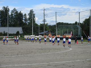 開・閉開式の練習が始まりました。国旗、優勝旗や準優勝杯、各学年のプラカードなど係の子どもたちが、先生の指導の下それぞれの動きやタイミングを確認しながら、練習しています。