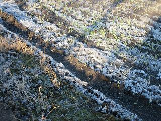 今朝の冷え込みは厳しかったですね。通学路の武子川にはわずかですが川霧が、そして畑には霜柱が・・。