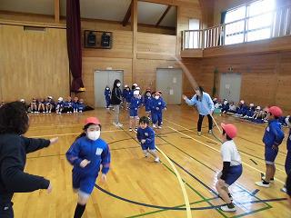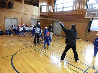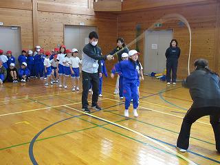 2年生になると、縄を回す役目は、子どもたちです。腕を伸ばして大きく回しているのが印象的でした。1回目より2回目、調子が出てきてスピードが出てきて子どもたちも楽しそうに跳んでいました。そして、目標の100回を超えることができました。おめでとう。