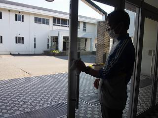 学校では、毎日全職員でドア、ドアノブ、トイレ、階段の手すりなど多くの人が触れるところを次亜塩素酸ナトリウムの希釈液で消毒しています。