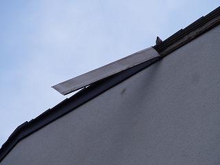 北校舎屋上近く、破風板が破損しました。現在修繕を依頼中です。