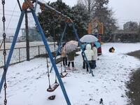 話は変わって、今日は雪が降りましたね。遊びやすいふかふか雪ではありませんでしたが、子供たちは、早速外に出て、楽しんでいました。虫眼鏡で雪の観察をしている学年もありました。