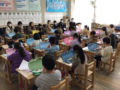 2年生です。「ふゆのはなさいた」「「もっと大きなたいほうを」などを聞きました。真剣に聞いて、時には笑い声も聞こえる楽しい時間でした。