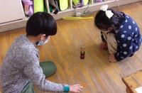 1年生が生活科の授業で、羽根つき、だるま落としなどの昔の遊びを体験しています。